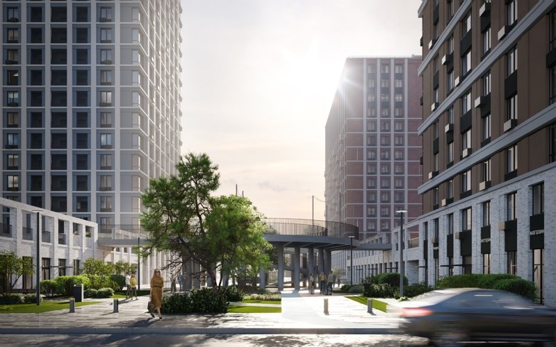 Возведенные по кирпично-монолитной технологии и объединенные легкими пешеходными мостами, корпуса будто перекликаются друг с другом, задавая тон безупречному стилю.