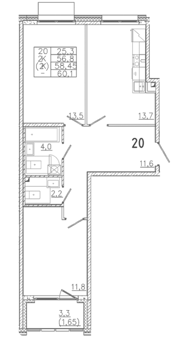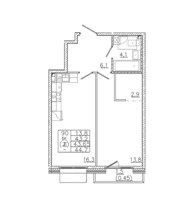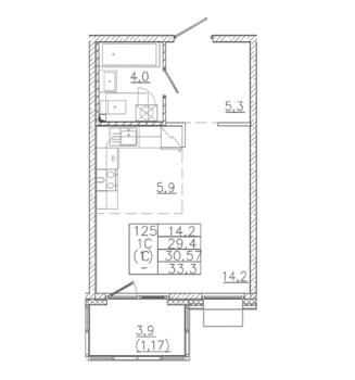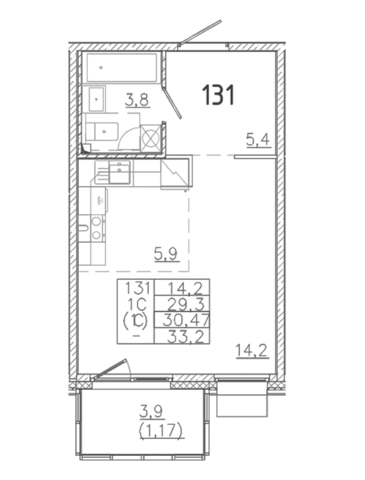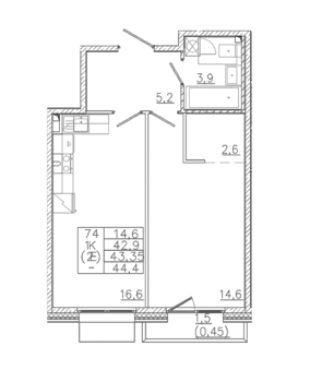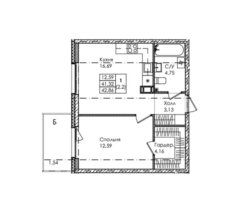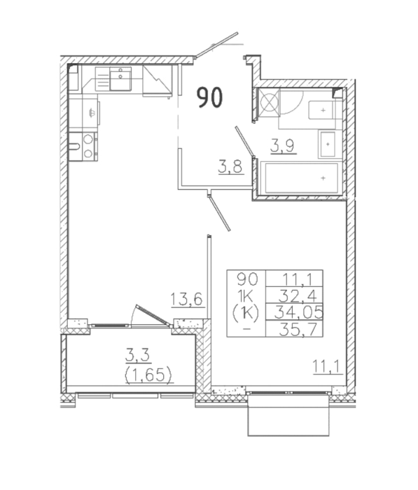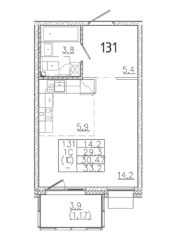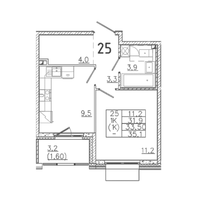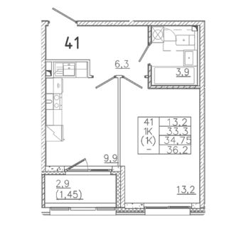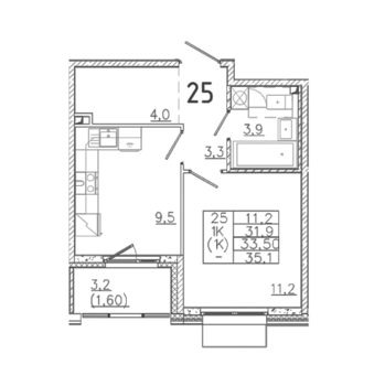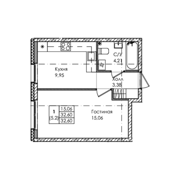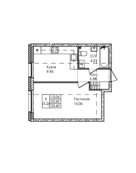 Площадь от 32.6 м2