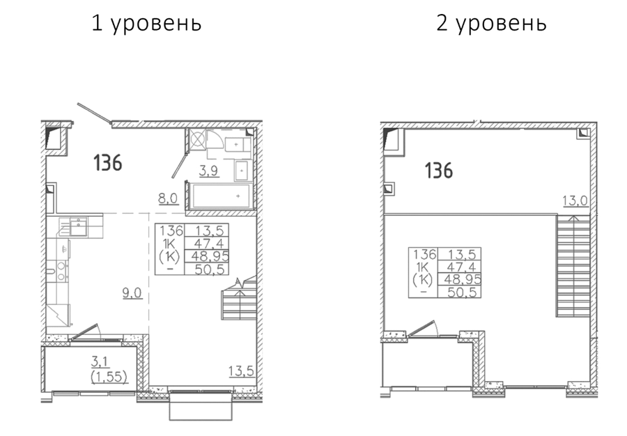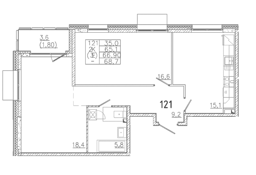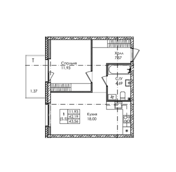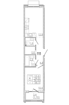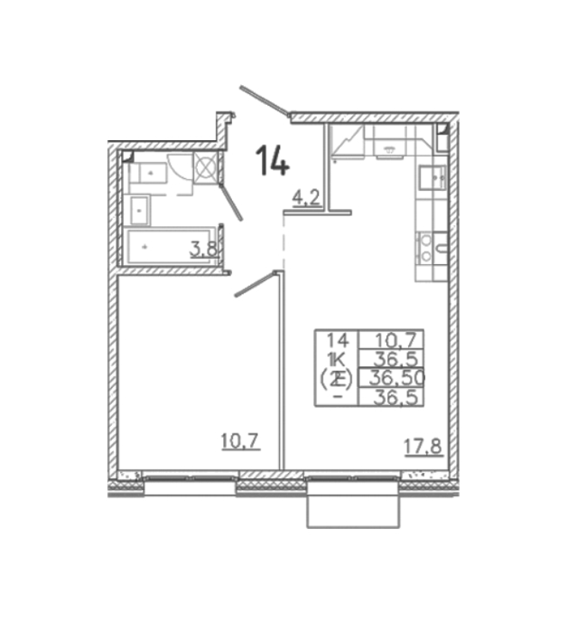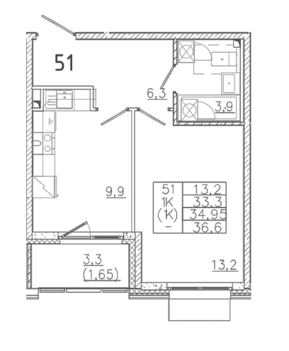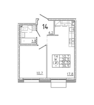 Площадь от 36.5 м2