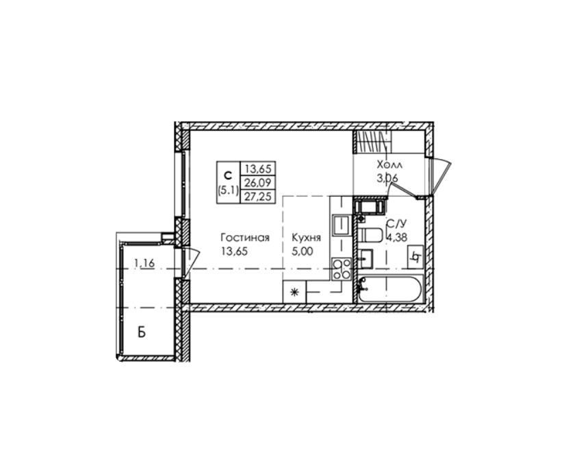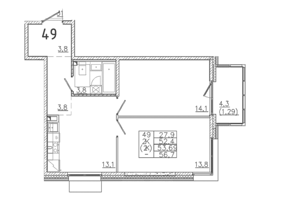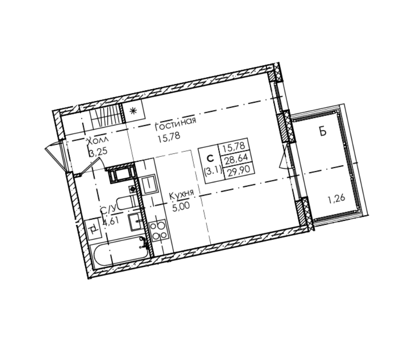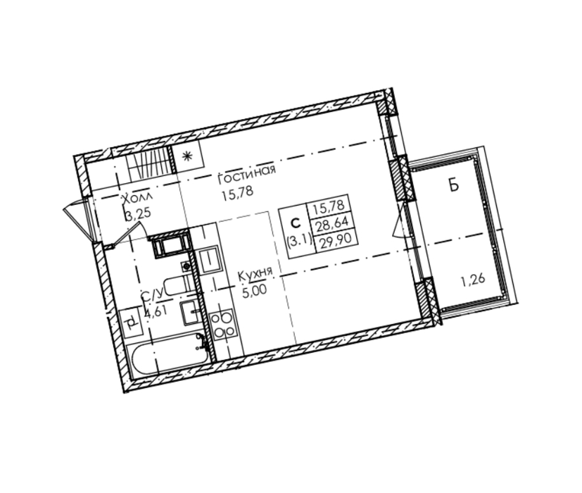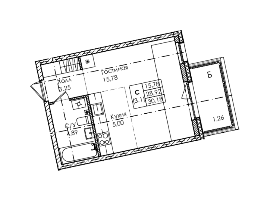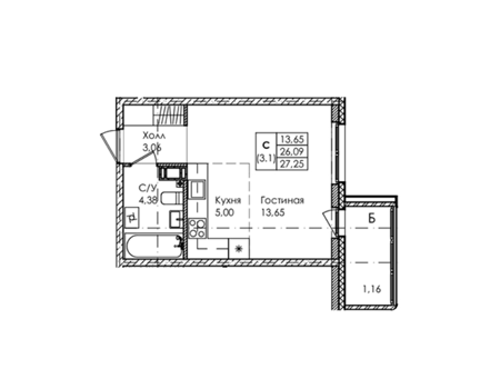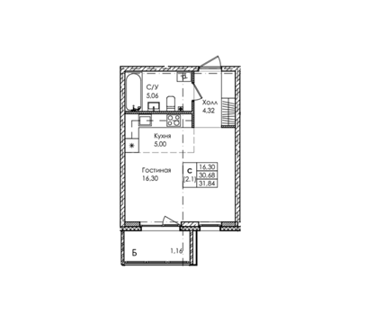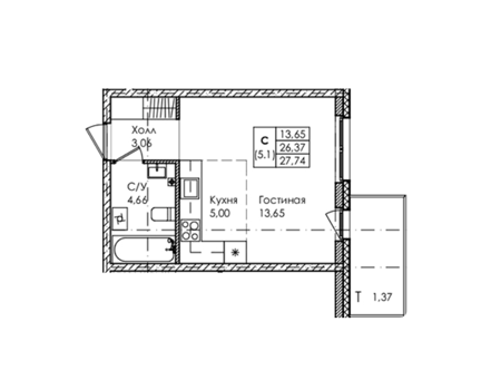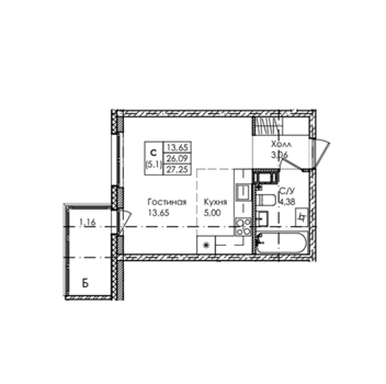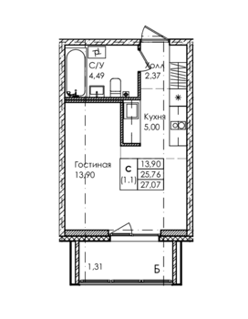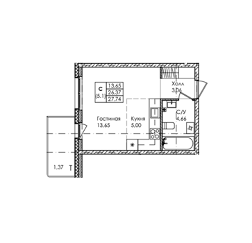 Площадь от 26.84 м2