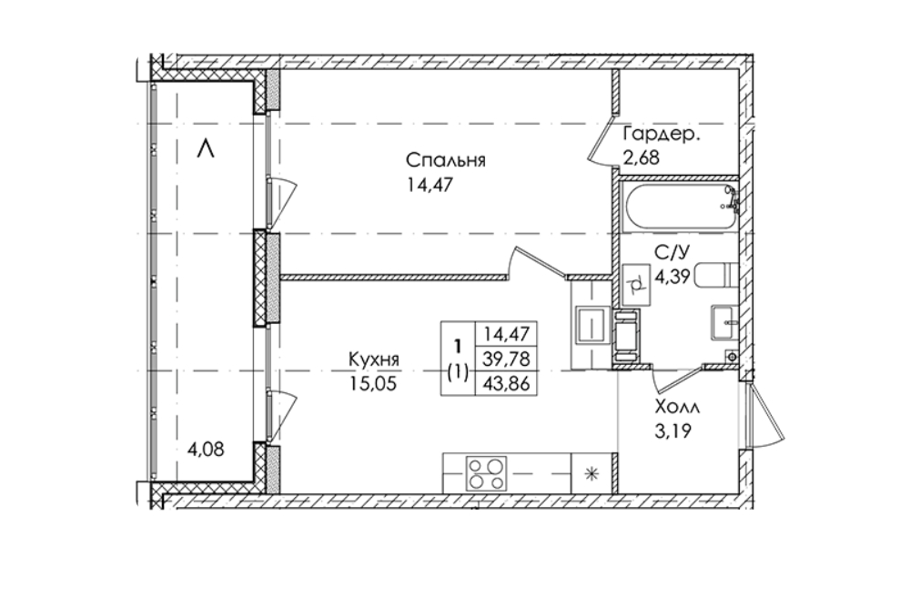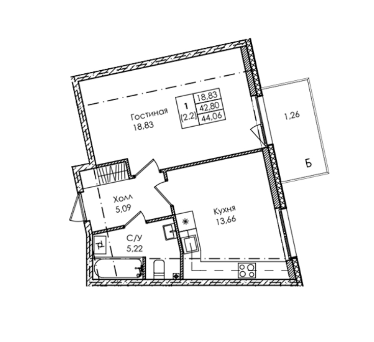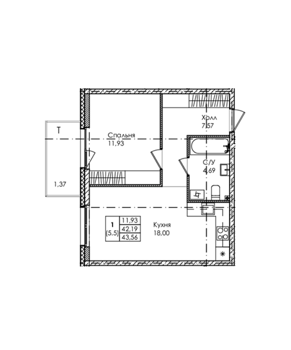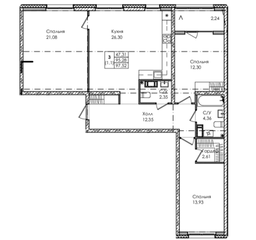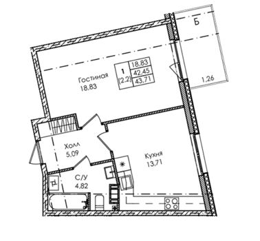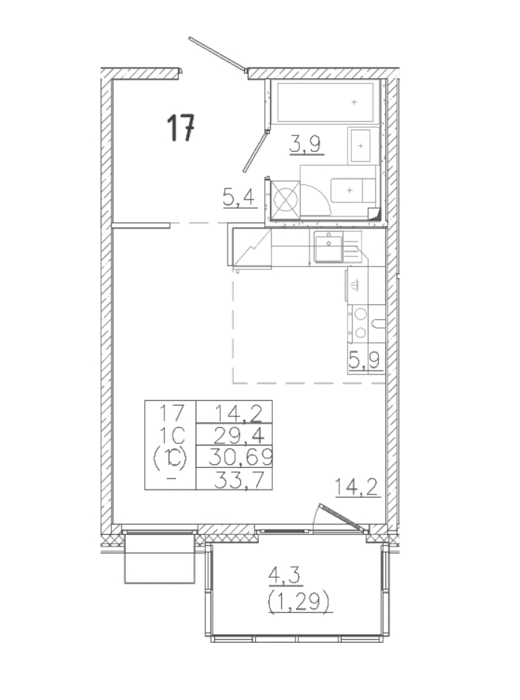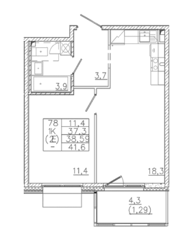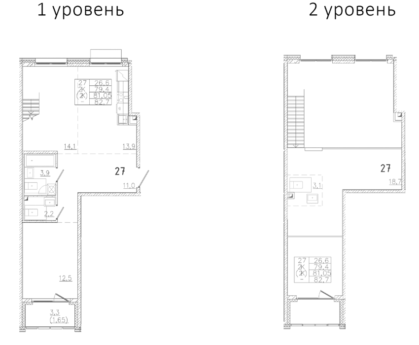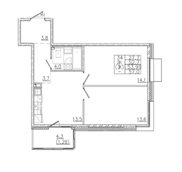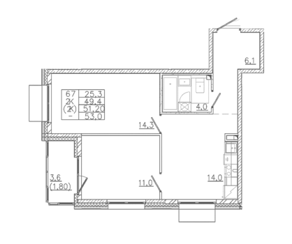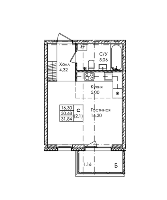 Площадь от 26.84 м2