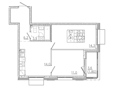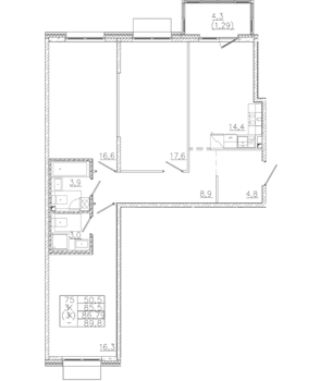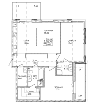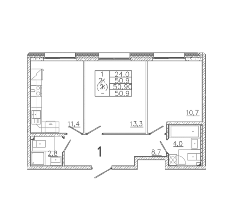 Площадь от 50.9 м2