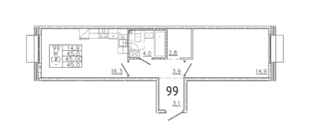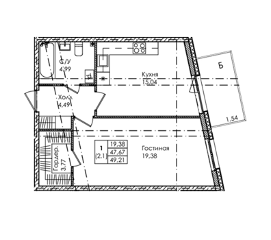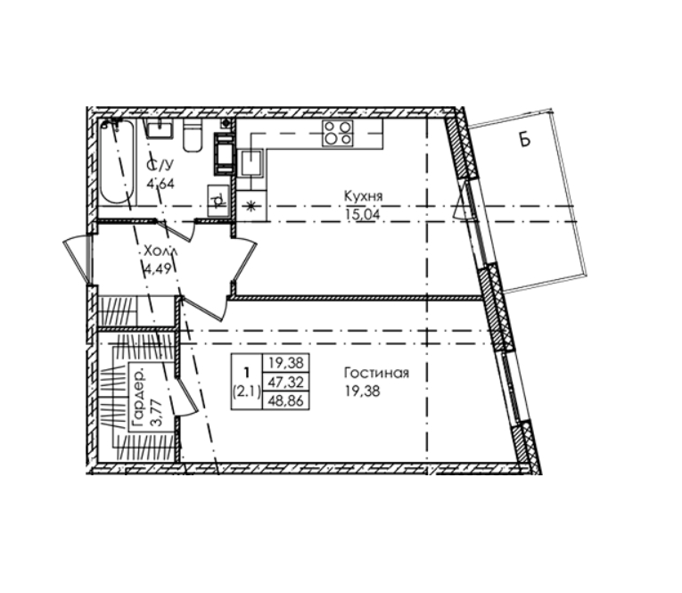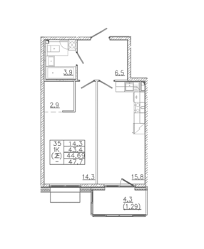 Площадь от 46.9 м2