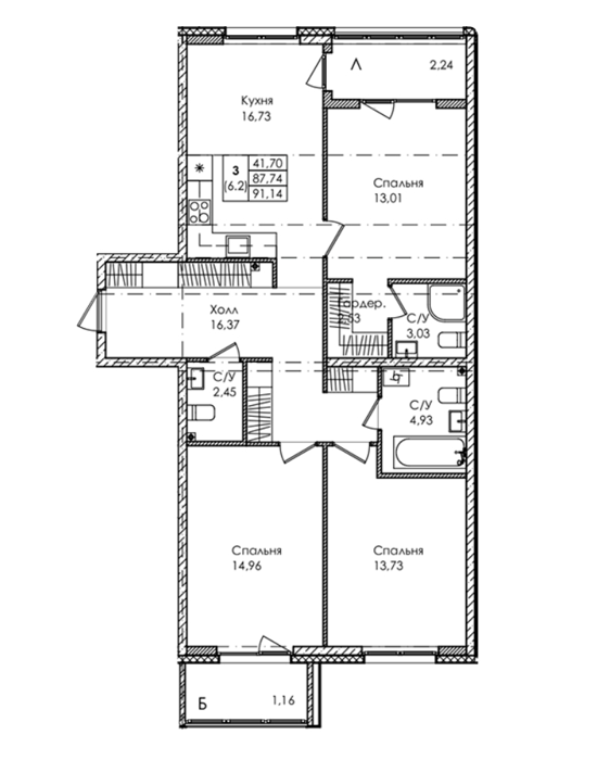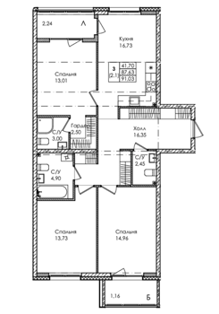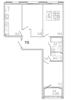 Площадь от 74 м2