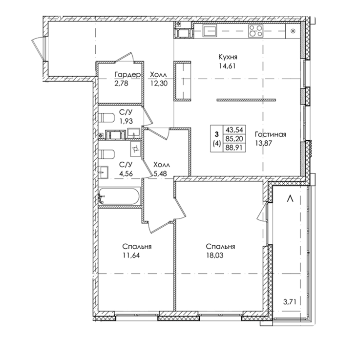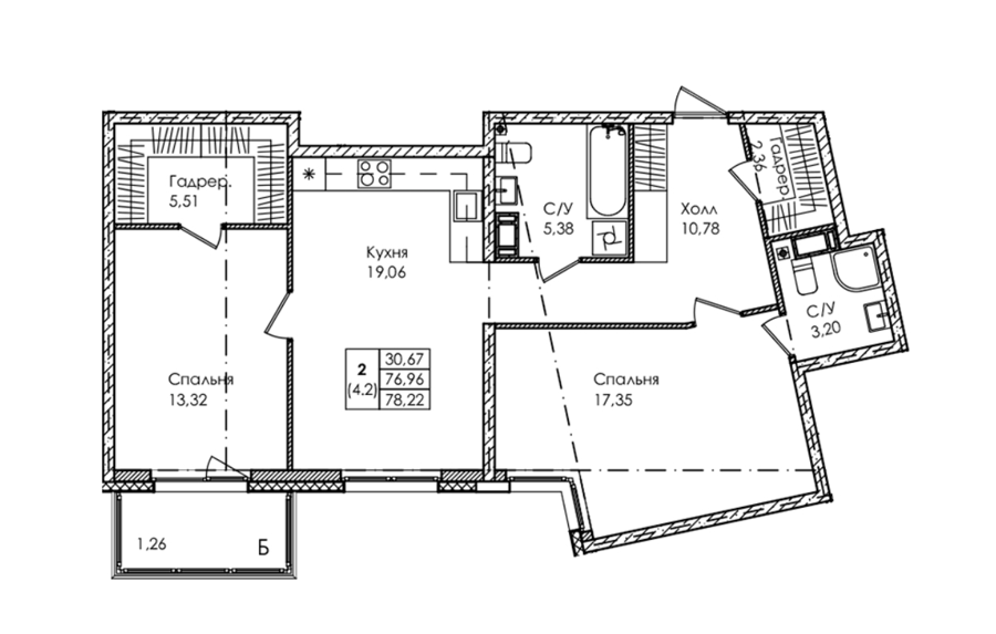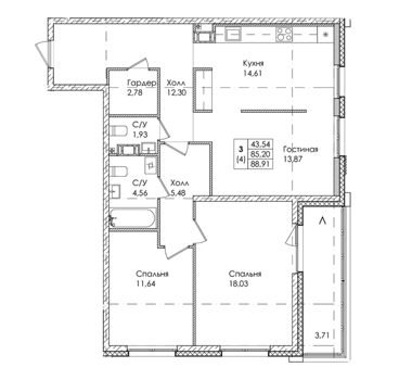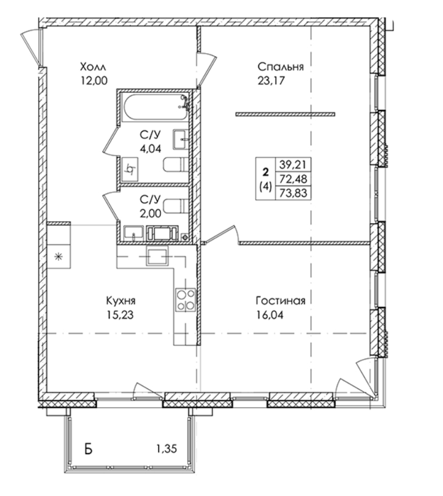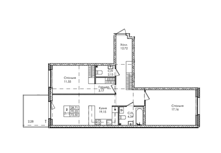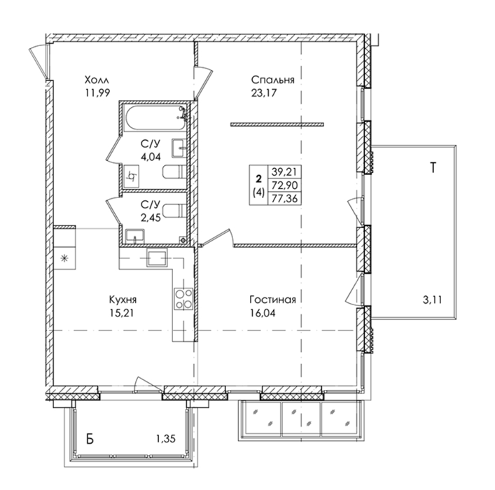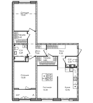 Площадь от 71.95 м2